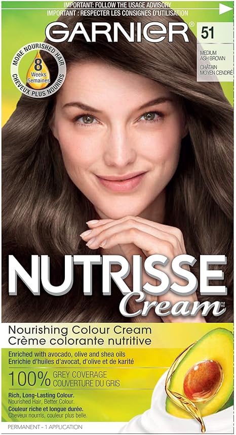 Garnier Nutrisse Cream 51 Medium Ash Brown Permanent Hair Colour Enriched With Avocado Olive And Shea Oils Amazon Ca Beauty